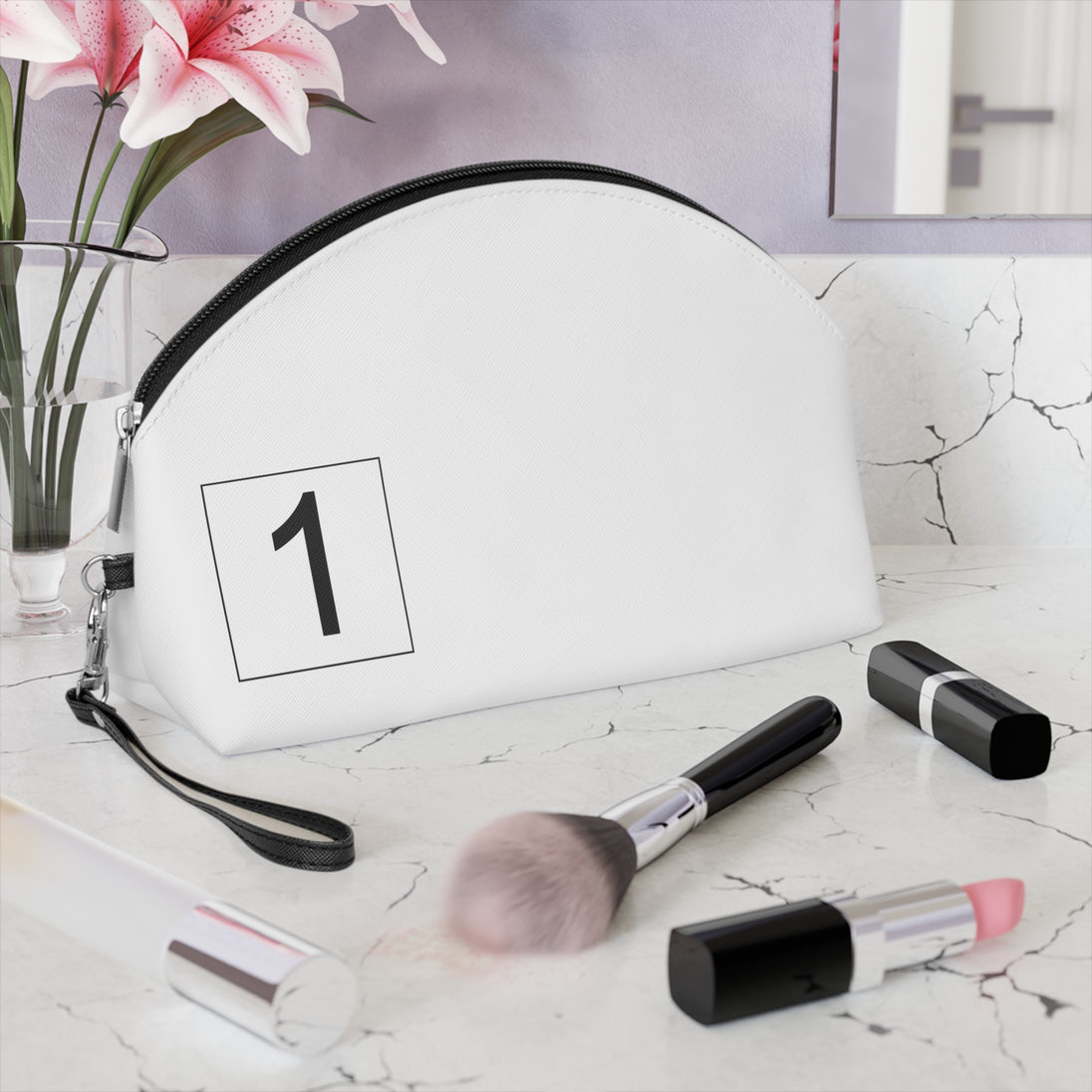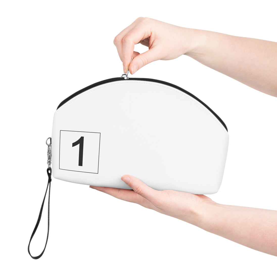There's more to makeup bags than meets the eye. Their main purpose is to store cosmetics, but they're often used to carry travel essentials, like cables, headphones, medicine, hygiene products. Some even use them as art supply cases. These curve-top bags will be the top multi-purpose item in any home with your unique design. They have a zipper for safety and a removable leather strap for comfort.